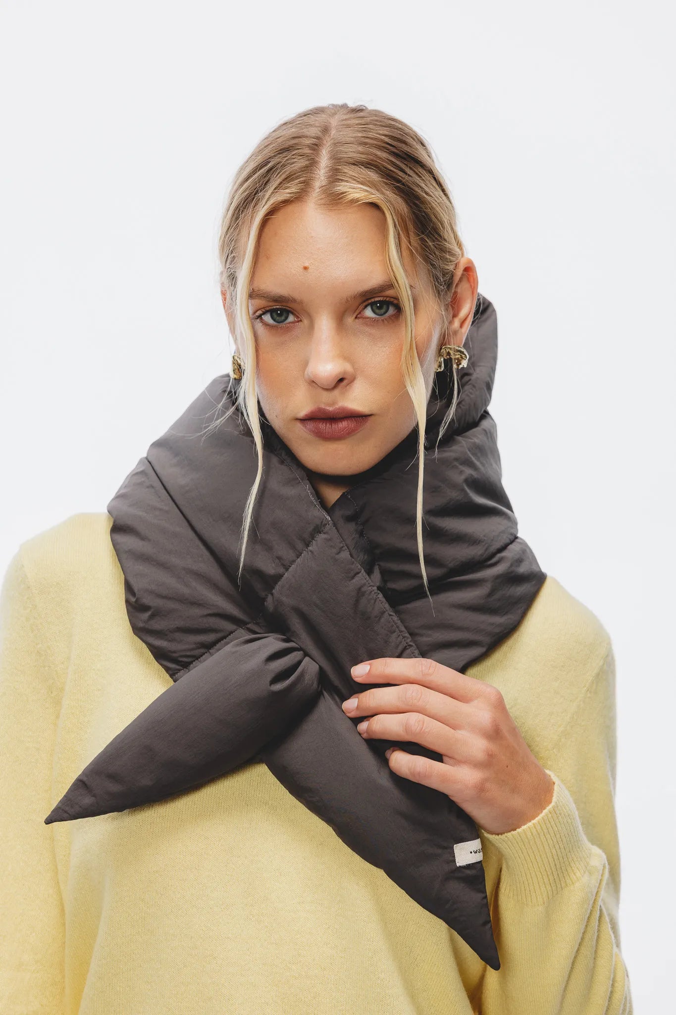 • Dobi to puchowy szal, który przyciąga uwagę i dodaje każdej stylizacji charakteru. Jego geometryczny, trójkątny kształt i objętość tworzą nowoczesną formę, która łączy funkcję i styl w najlepszym wydaniu.