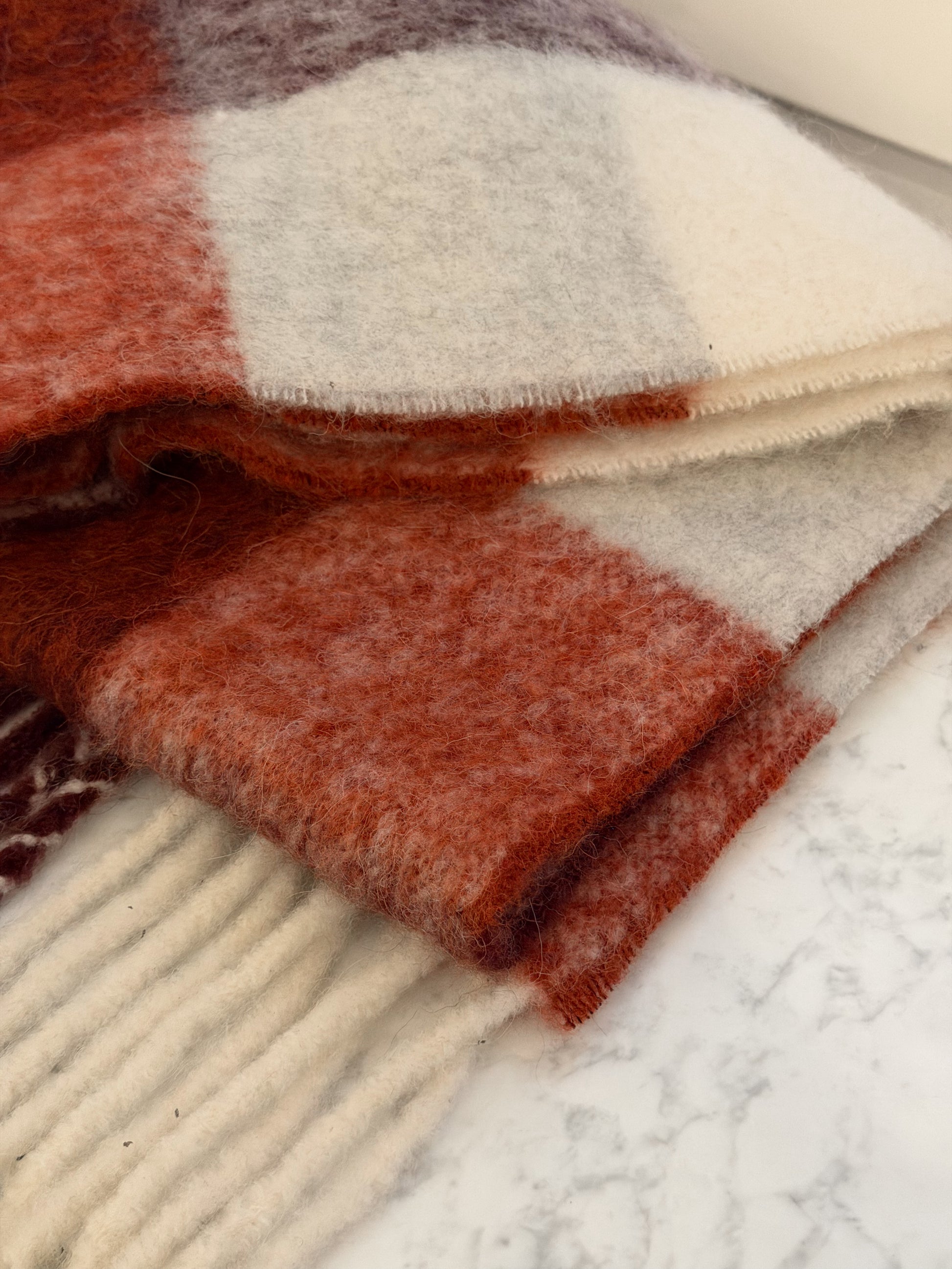 Miękka, puszysta faktura szalika nadaje mu luksusowego wyglądu, a długie frędzle na końcach podkreślają jego nonszalancki, modowy charakter. Wykonany został z wysokogatunkowej przędzy zawierającej alpakę i wełnę jagnięcą, co zapewnia doskonałą termoizolację i przyjemne ciepło. Dzięki właściwościom termoregulacyjnym wełny szalik skutecznie chroni przed zimnem, jednocześnie pozwalając skórze oddychać i zapobiegając przegrzaniu.
