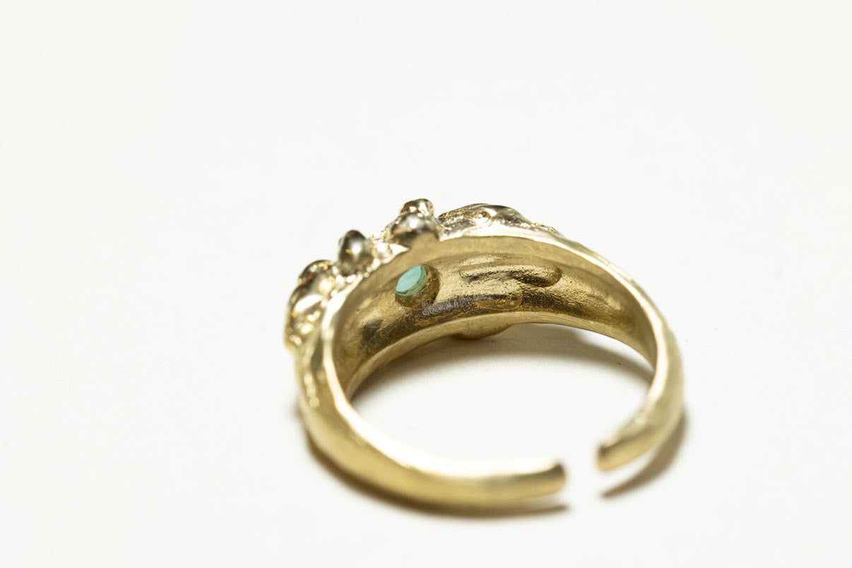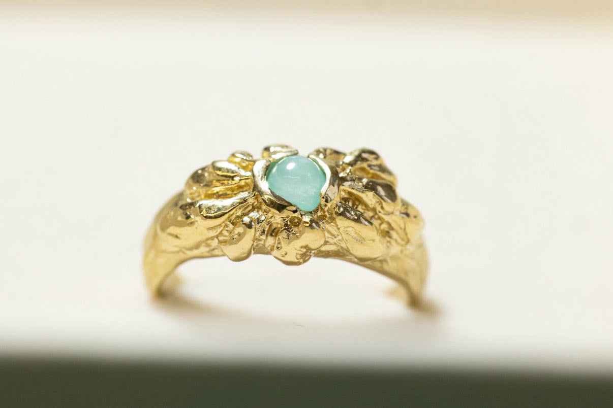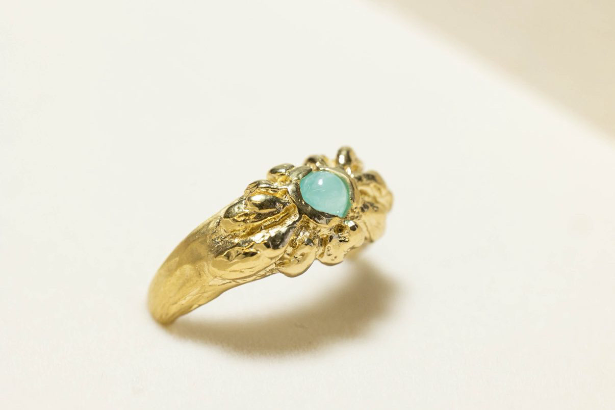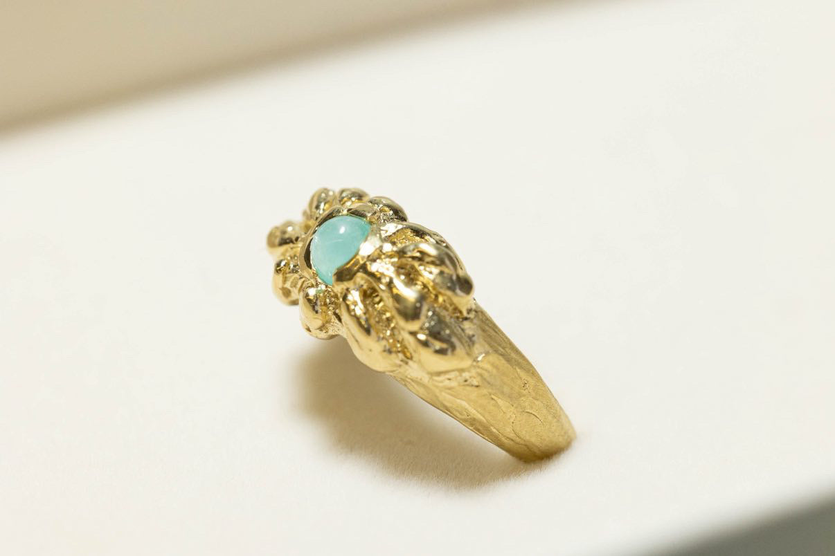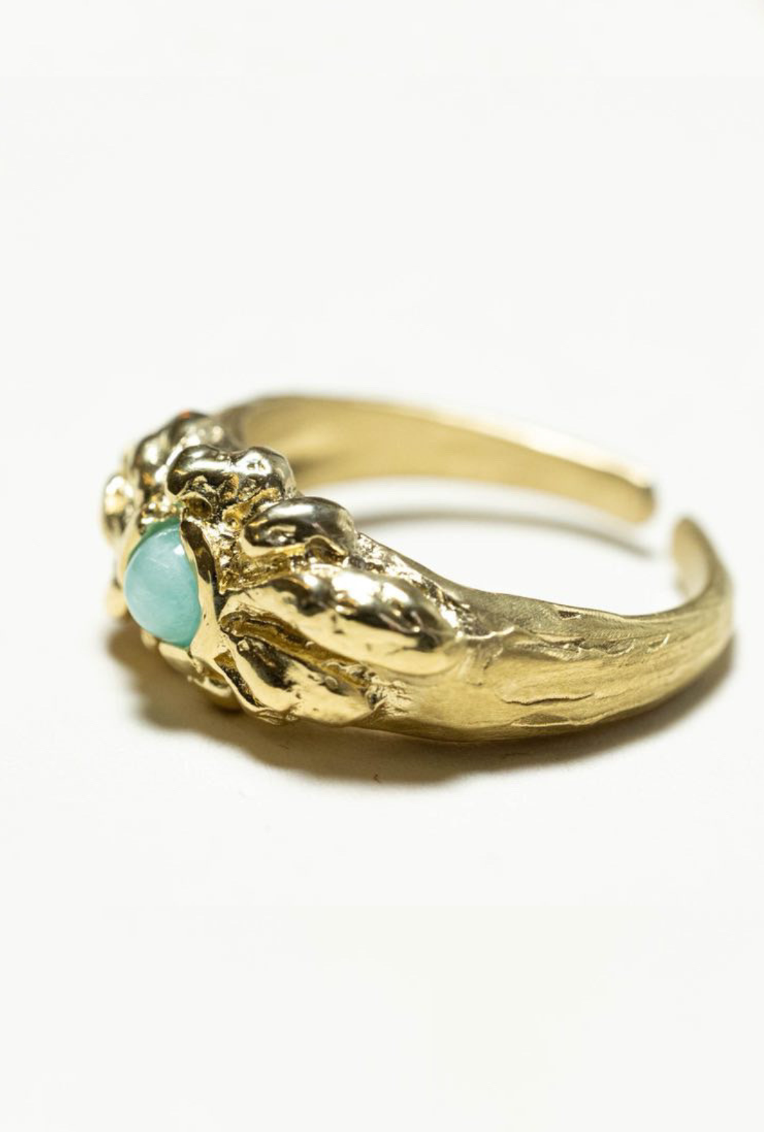 Z tej symboliki narodził się limitowany pierścionek z naturalnym kamieniem — amazonitem, którego błękitna barwa przypomina o sile natury i wewnętrznej równowadze.