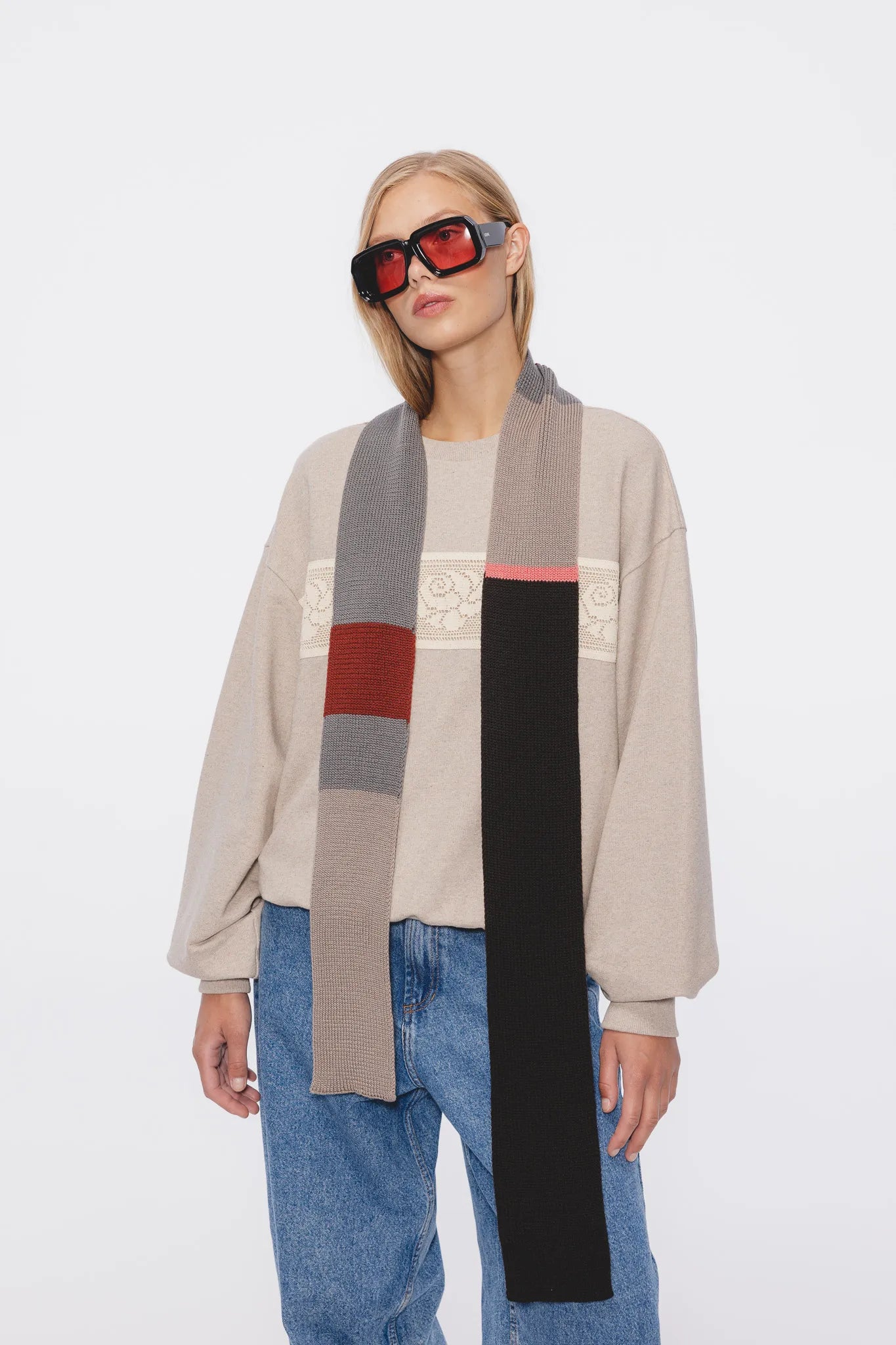 Szalik Sewera jest idealny zarówno do płaszcza, jak i do codziennych zestawów z oversize’ową kurtką czy marynarką.