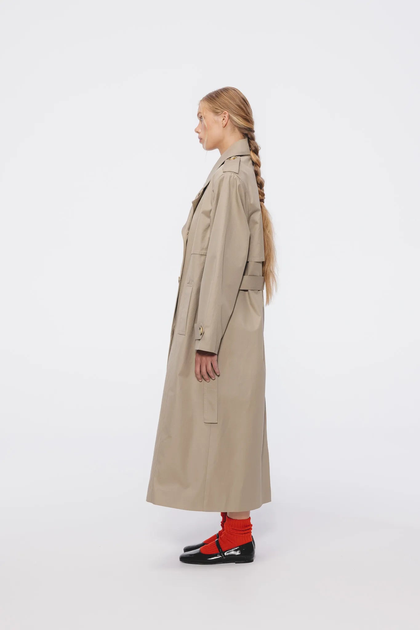 Płaszcz Pandora to klasyczny, długi trencz w ponadczasowym pistacjowym odcieniu, który łączy elegancję z funkcjonalnością. Wykonany z bawełny z wiskozową podszewką, gwarantuje komfort noszenia i trwałość na lata.