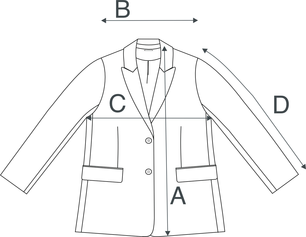 Model wyróżnia się klasyczną formą inspirowaną męskim garniturem, co dodaje mu nowoczesnego charakteru i uniwersalności. Dwa guziki z przodu podkreślają klasyczną linię, a klapy w stylu peaked lapel nadają całości ponadczasowej elegancji. Z tyłu marynarka ma rozporki po bokach, które zapewniają wygodę i lekkość w noszeniu.