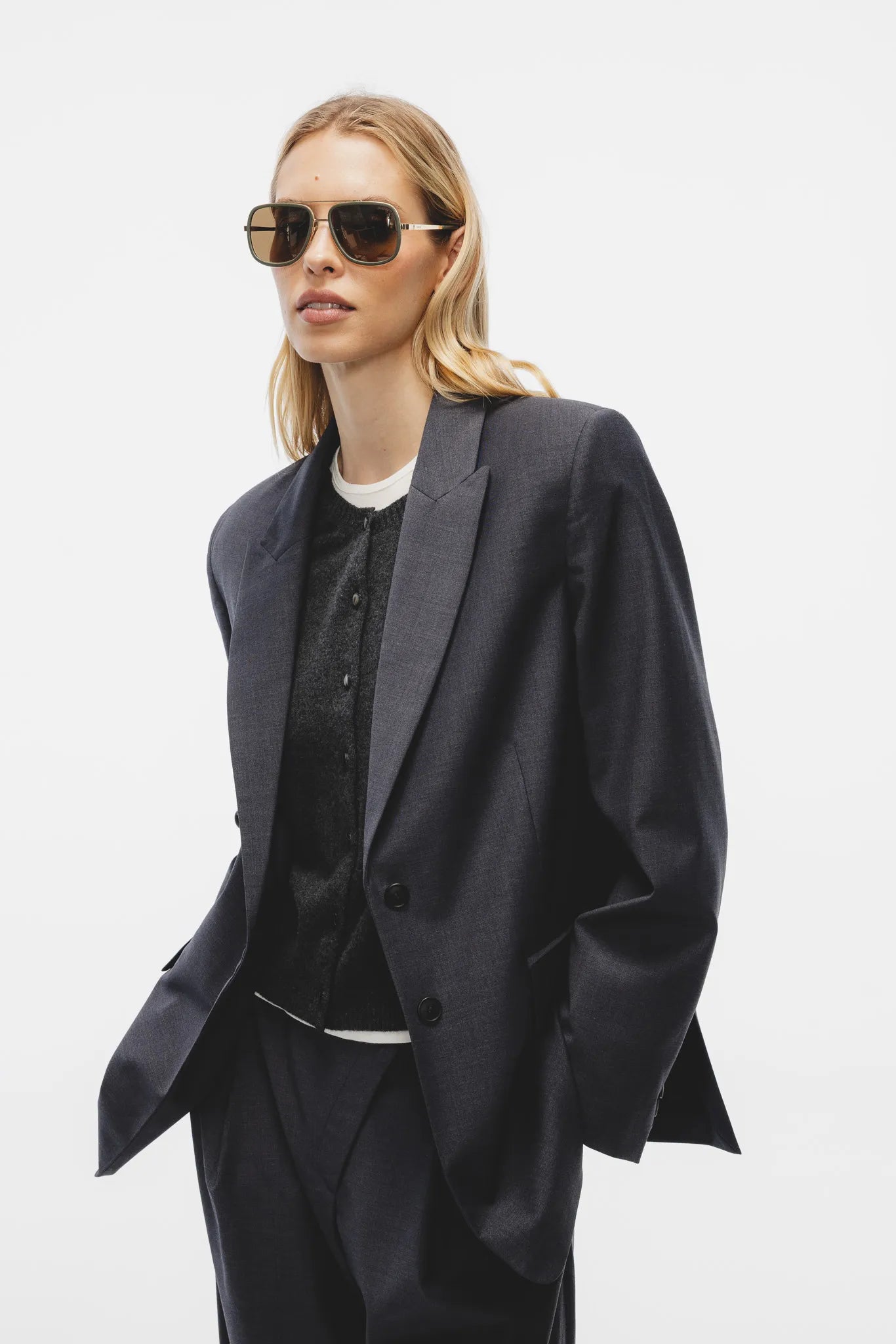 Marynarka Tori doskonale prezentuje się zarówno w eleganckim zestawie ze spodniami Molly, tworząc stylowy garnitur, jak i w bardziej casualowej odsłonie – z jeansami i białą koszulą.