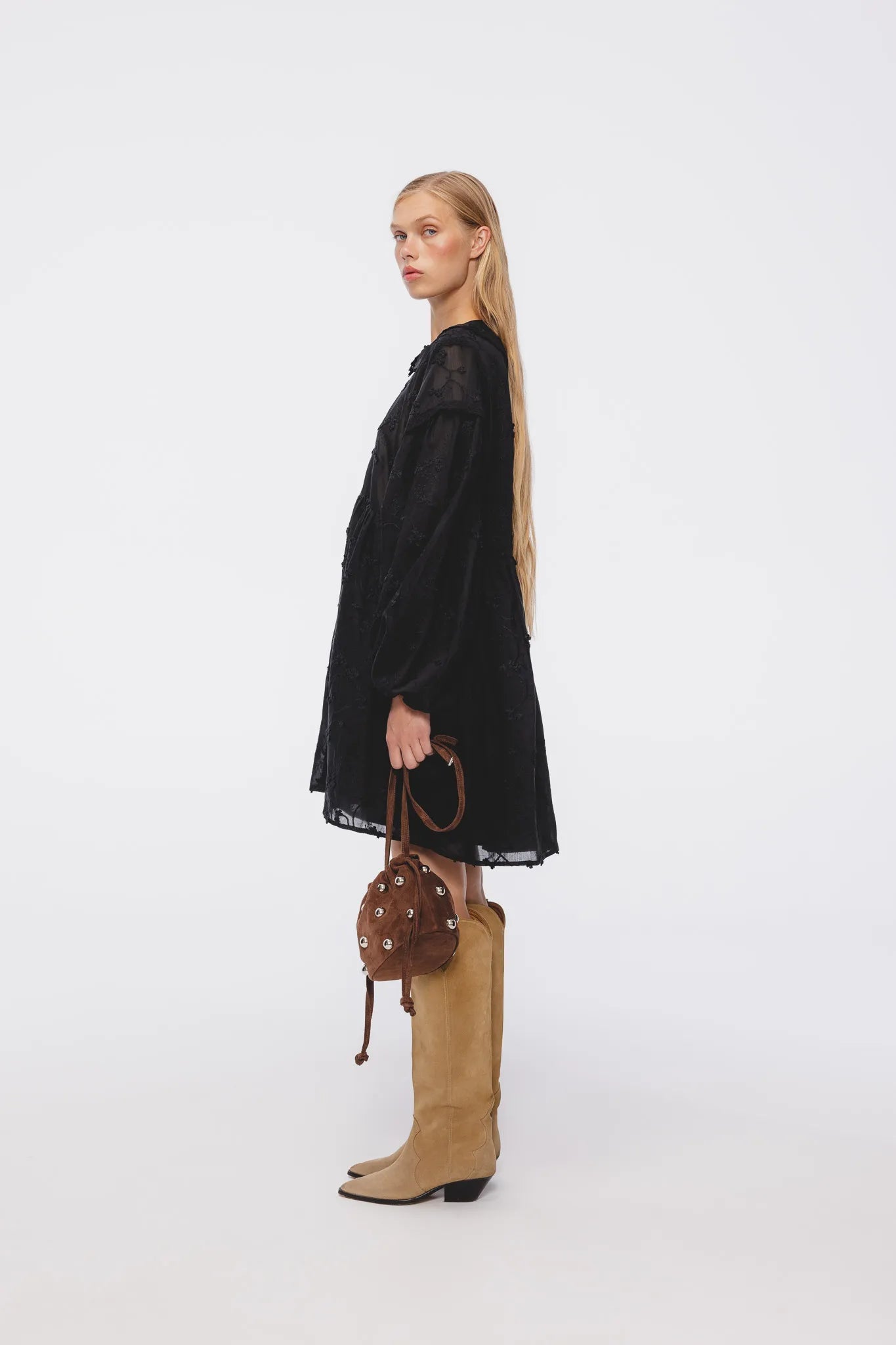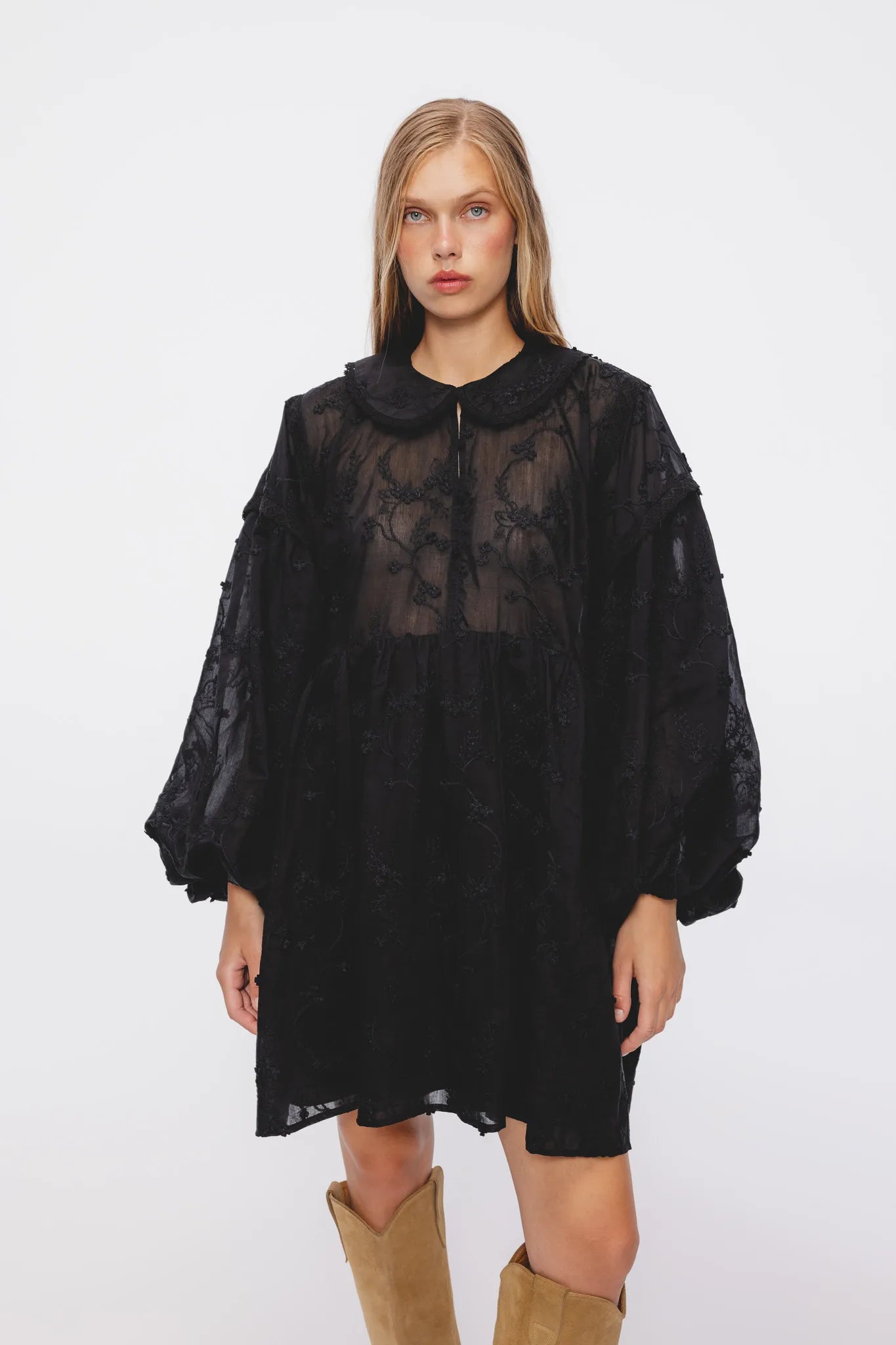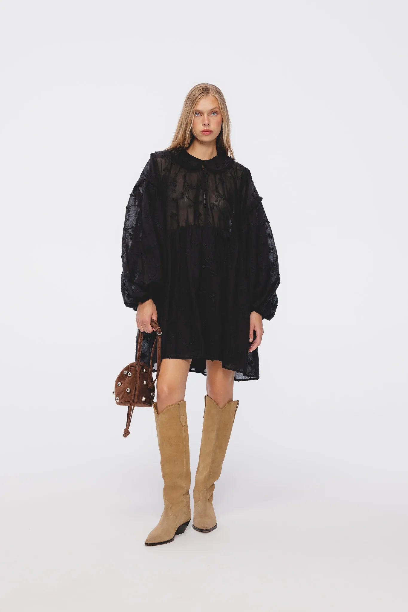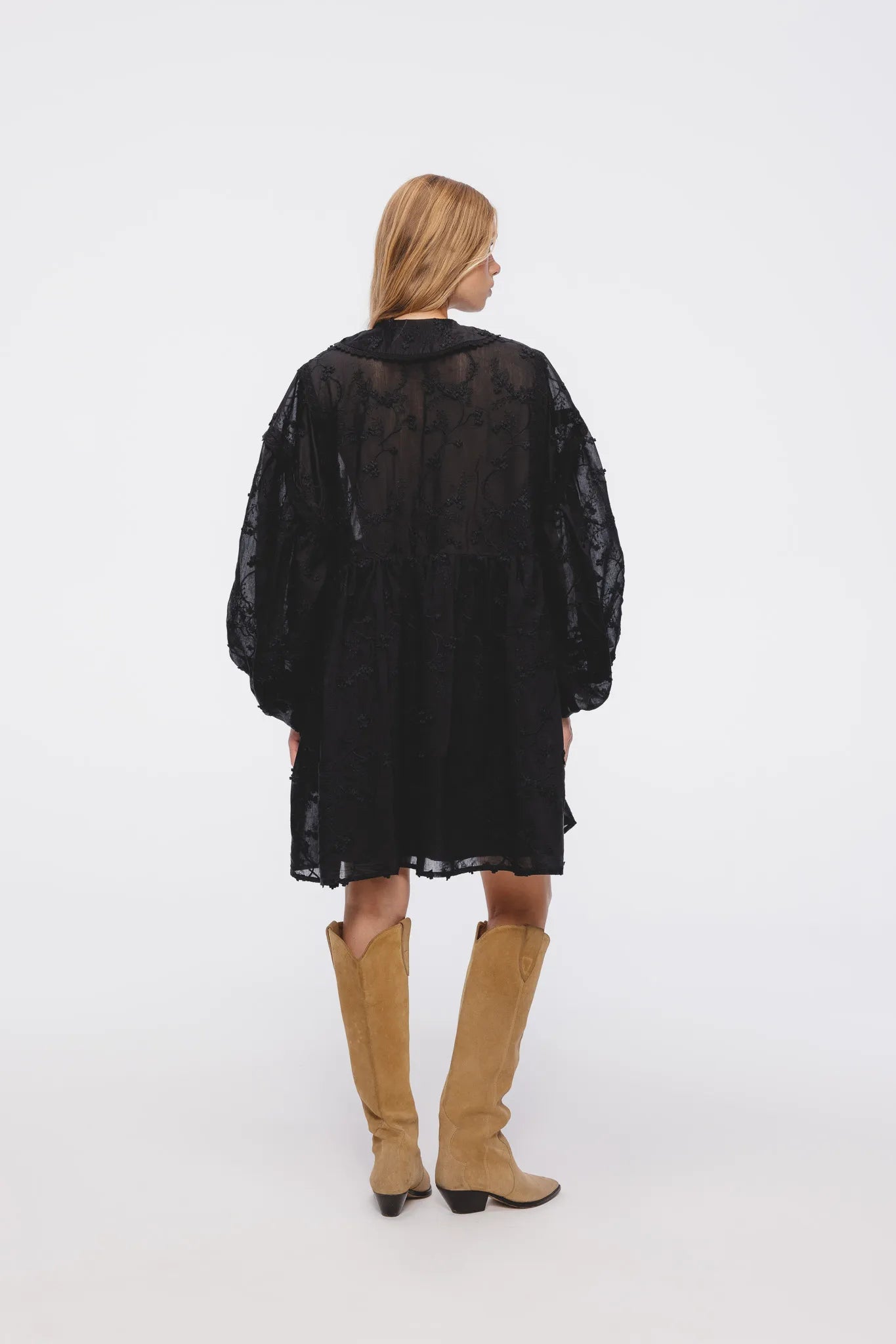 Sukienka Lilianna w kolorze czarnym sprawdzi się zarówno na co dzień, jak i na wyjątkowe okazje. Możesz zestawić ją z kozakami i skórzaną kurtką dla bardziej rockowego efektu, albo z delikatnymi balerinami i marynarką, aby uzyskać romantyczny, klasyczny look. Dzięki koronkowym detalom i haftowanemu wzorowi jest modelem, który sam w sobie stanowi mocny akcent stylizacji.