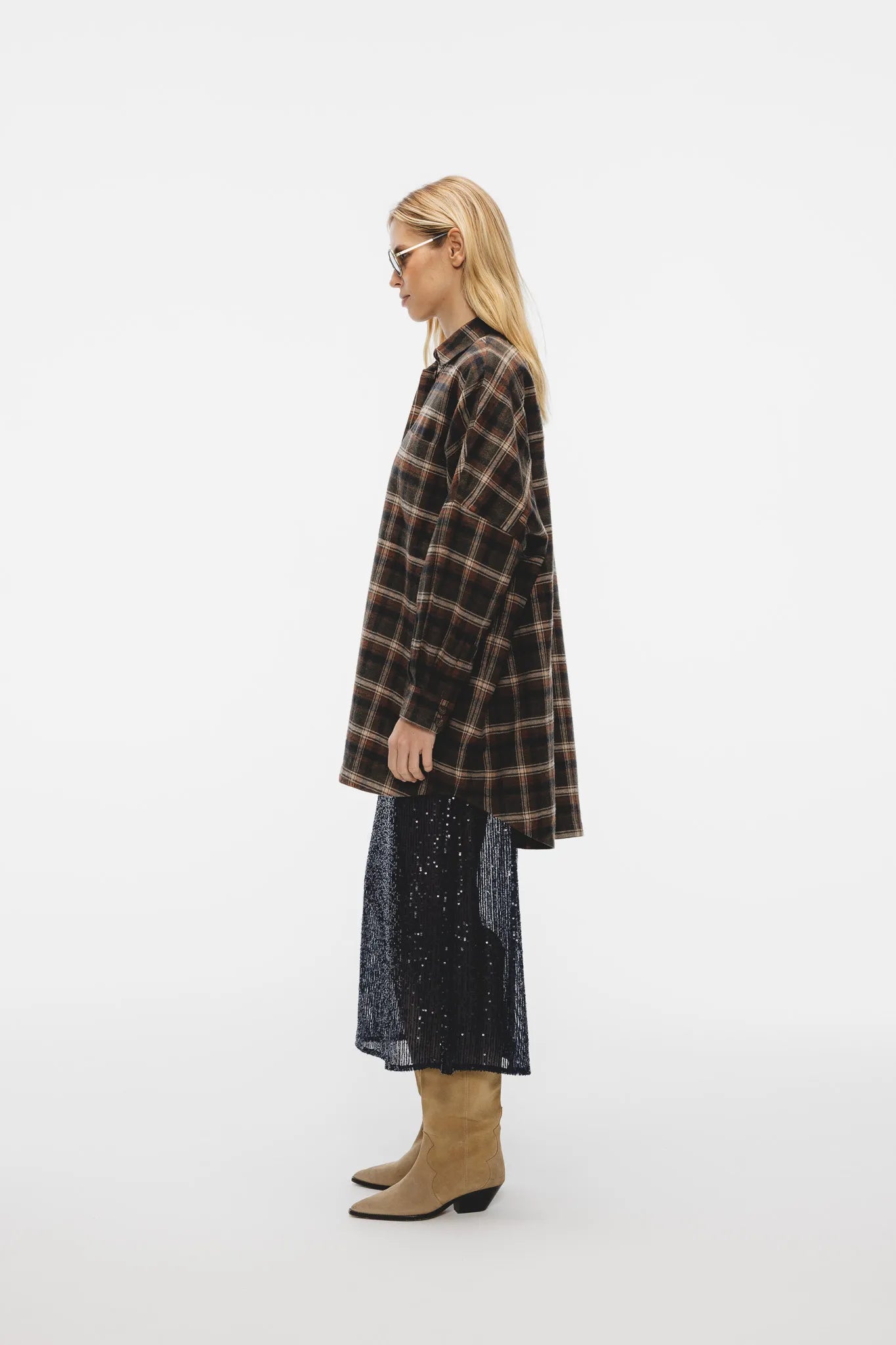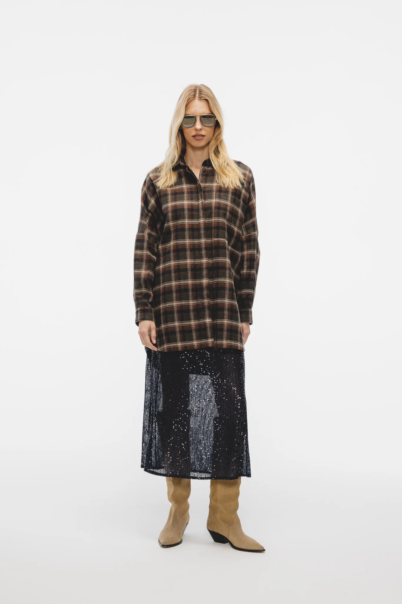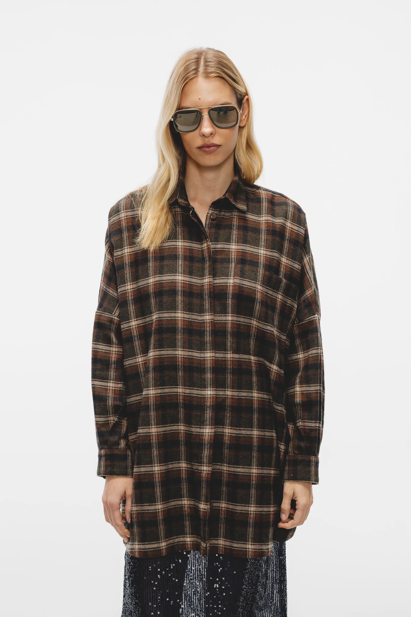 Miękka bawełna w splocie flanelowym jest przyjemna w dotyku, lekko otulająca, odpowiednia do całorocznego noszenia. Melanż zieleni i brązu tworzy naturalną, ciepłą paletę inspirowaną odcieniami lasu. To neutralne, ponadczasowe barwy, które łatwo zestawisz z denimem, czernią, beżami czy wełnianymi spodniami. To koszula, która łączy codzienny komfort z dopracowaną formą. Naturalna, miękka i dobrze skrojona — idealna do stylizacji warstwowych i minimalistycznych.
