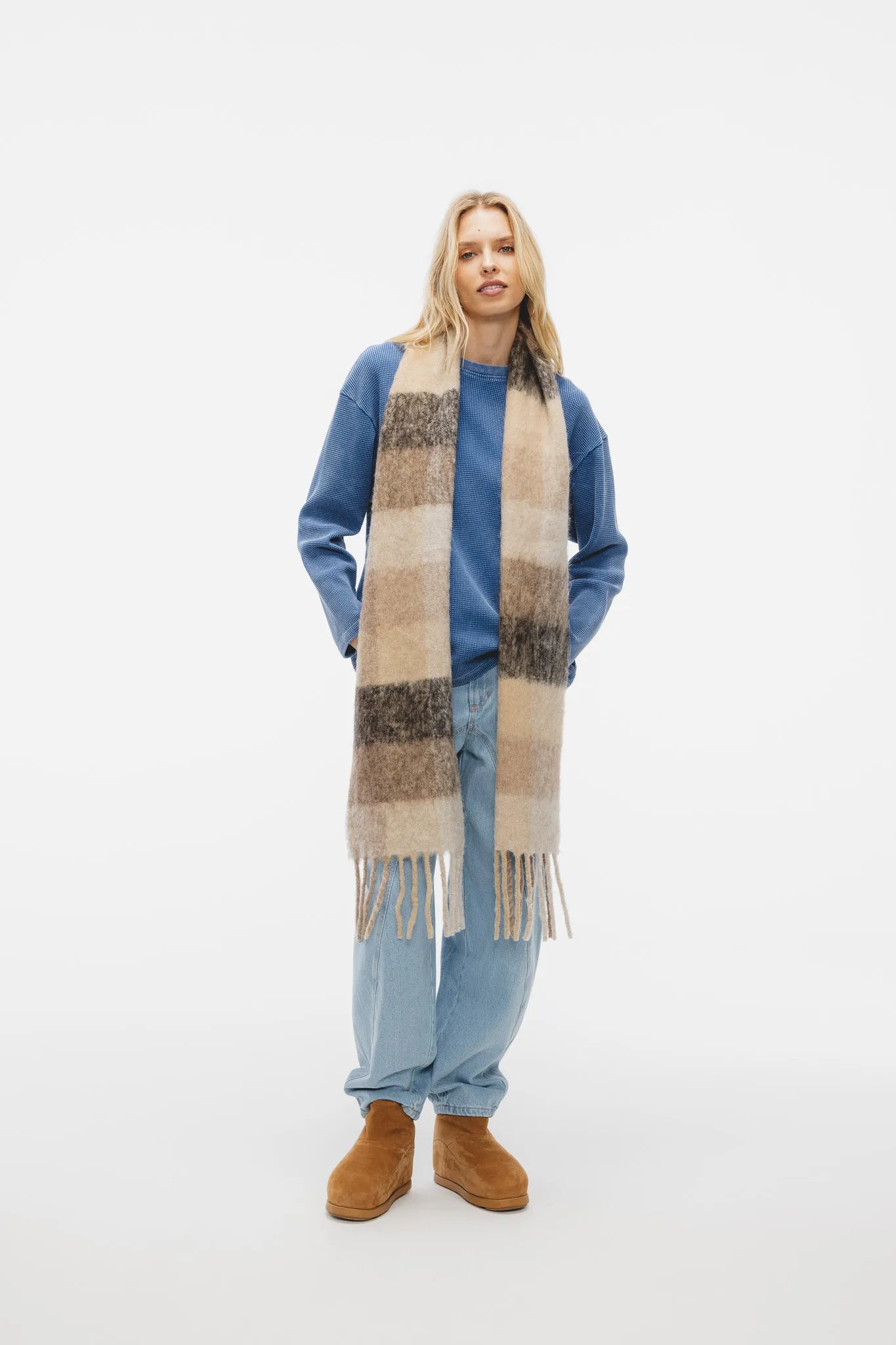 Longsleeve ma prostą linię i szerszy obwód, dzięki czemu układa się swobodnie na sylwetce. Obniżone ramię podkreśla luźny charakter, a rękawy zakończone są elastycznymi ściągaczami. Dół wykończony podwinięciem i pojedynczym przeszyciem. To longsleeve, który łączy komfort i prostotę z charakterystyczną fakturą materiału. Naturalny, swobodny i ponadczasowy — idealny jako baza codziennych stylizacji.