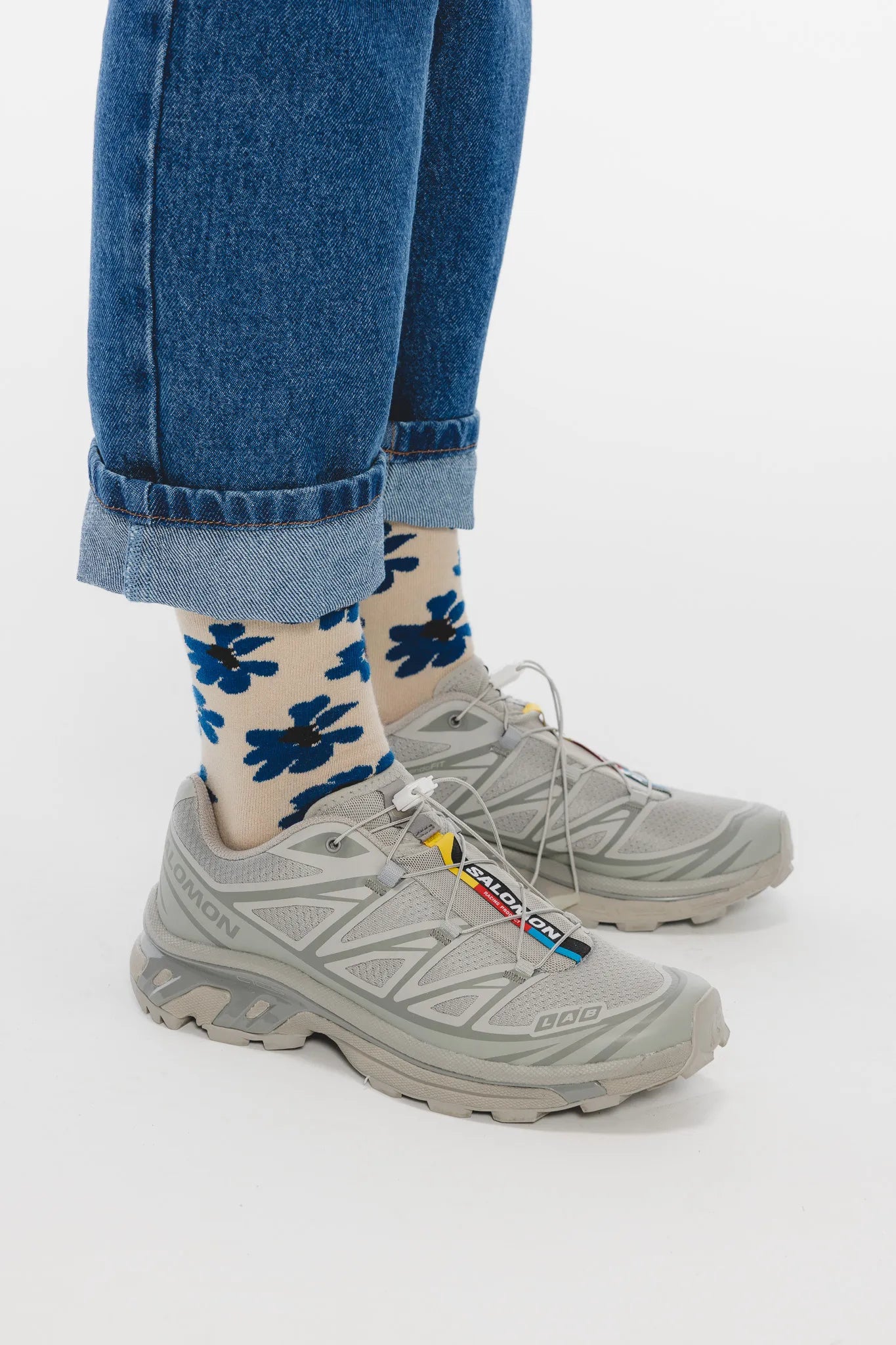 Skarpety Alaska to zestaw dwóch par kolorowych skarpet, które łączą wygodę z oryginalnym designem. Każda para ma unikatowy wzór — jedne w paski, drugie w kwiatowy print — dzięki czemu doskonale uzupełnią zarówno minimalistyczne, jak i bardziej wyraziste stylizacje.