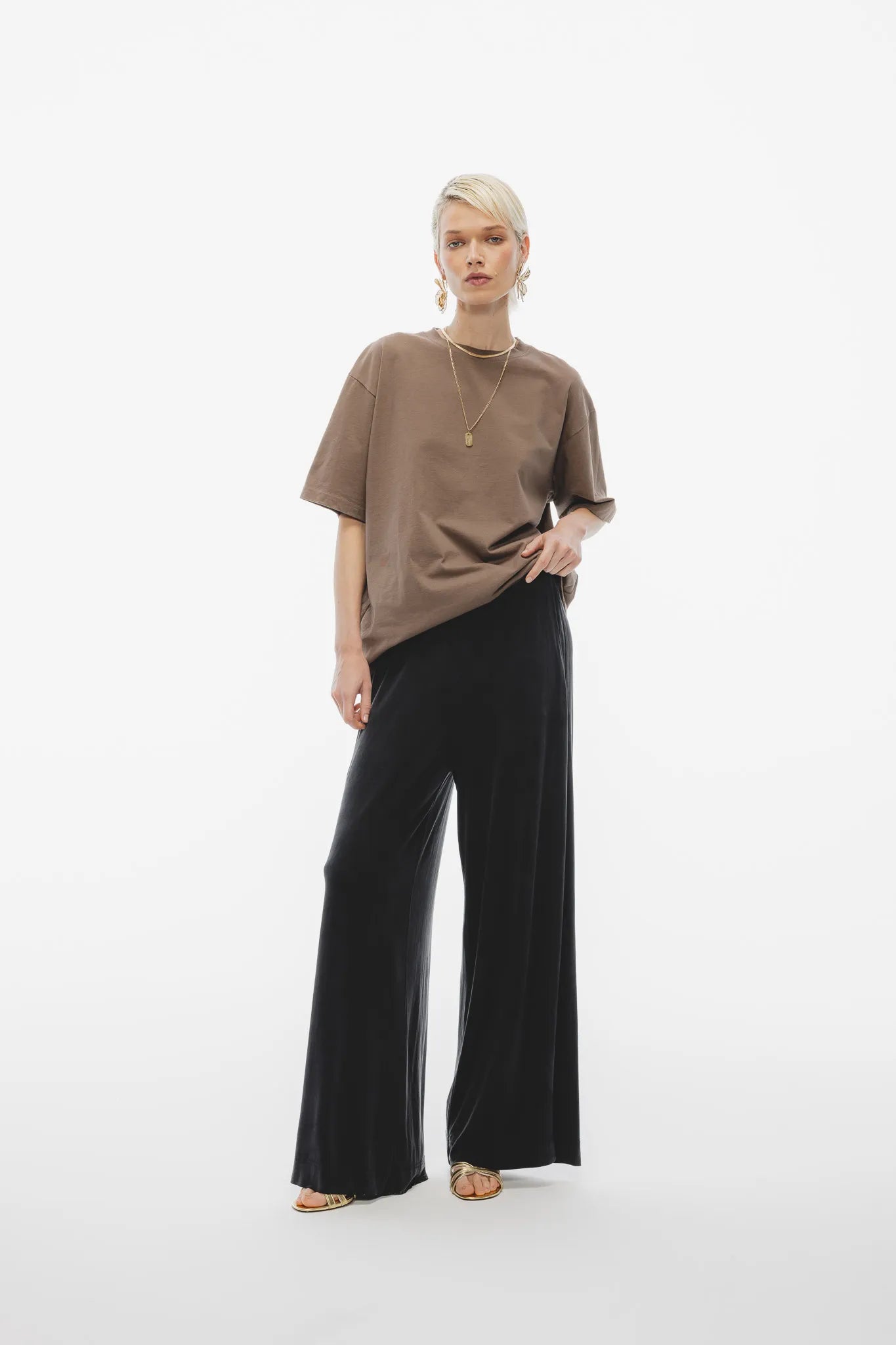 Spodnie z szerokimi nogawkami to jedna z najciekawszych modowych propozycji ostatnich sezonów. Janina są wykonane z cupro, które wyglądem przypomina jedwab i pięknie się układa, ale podobnie jak bawełna jest oddychający i dobrze reguluje temperaturę ciała.