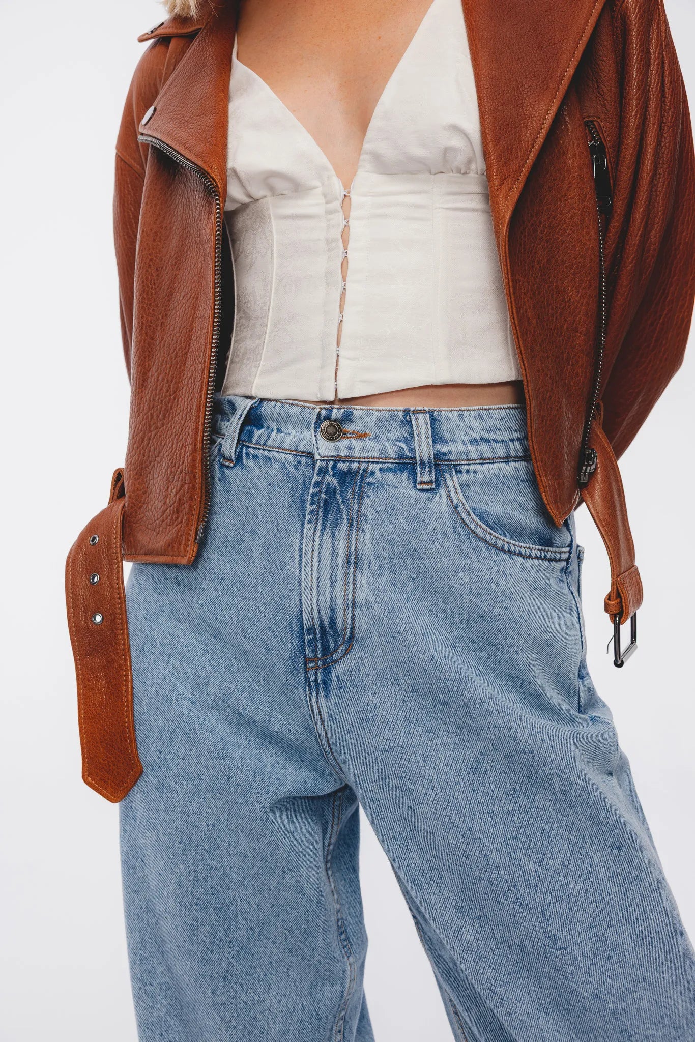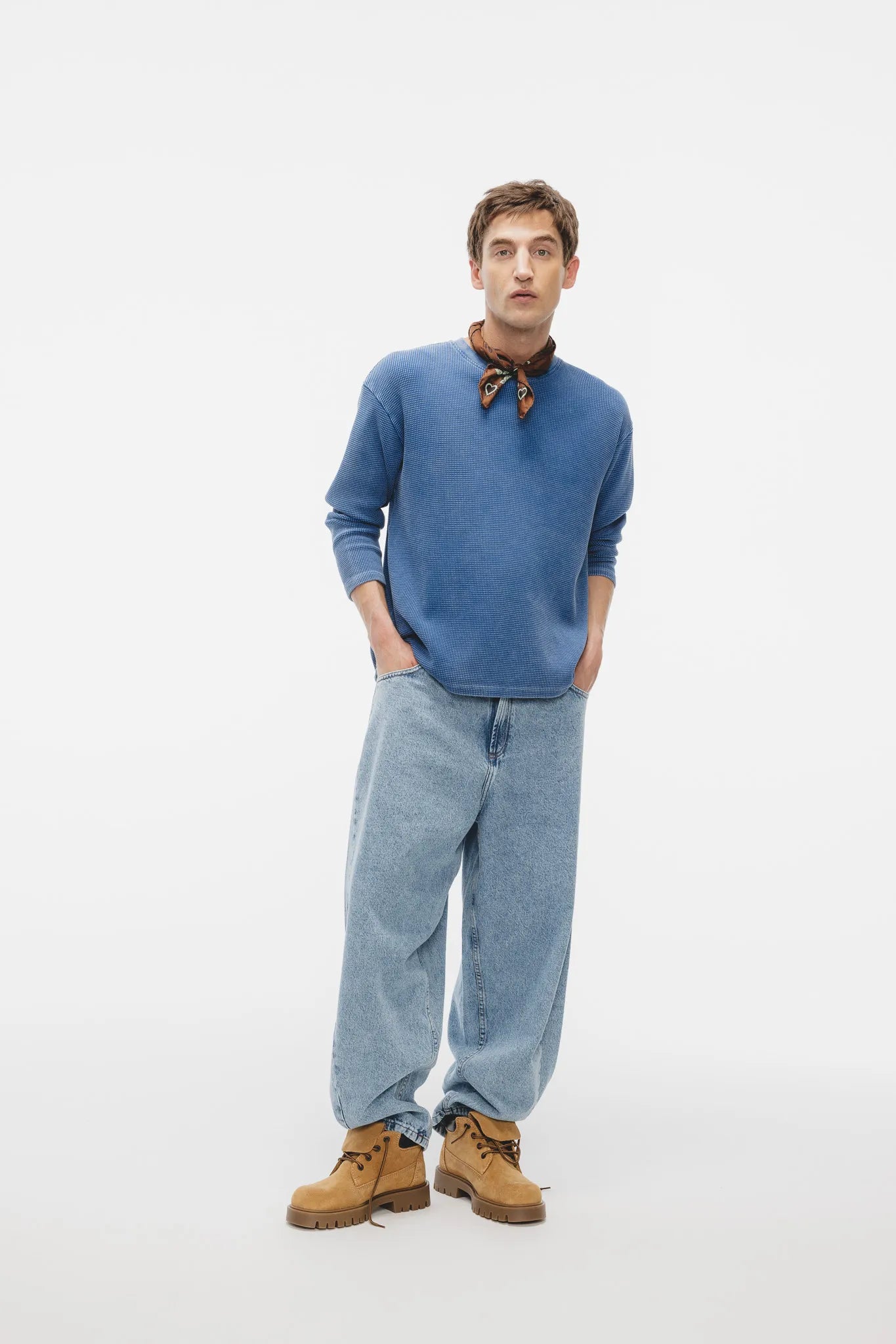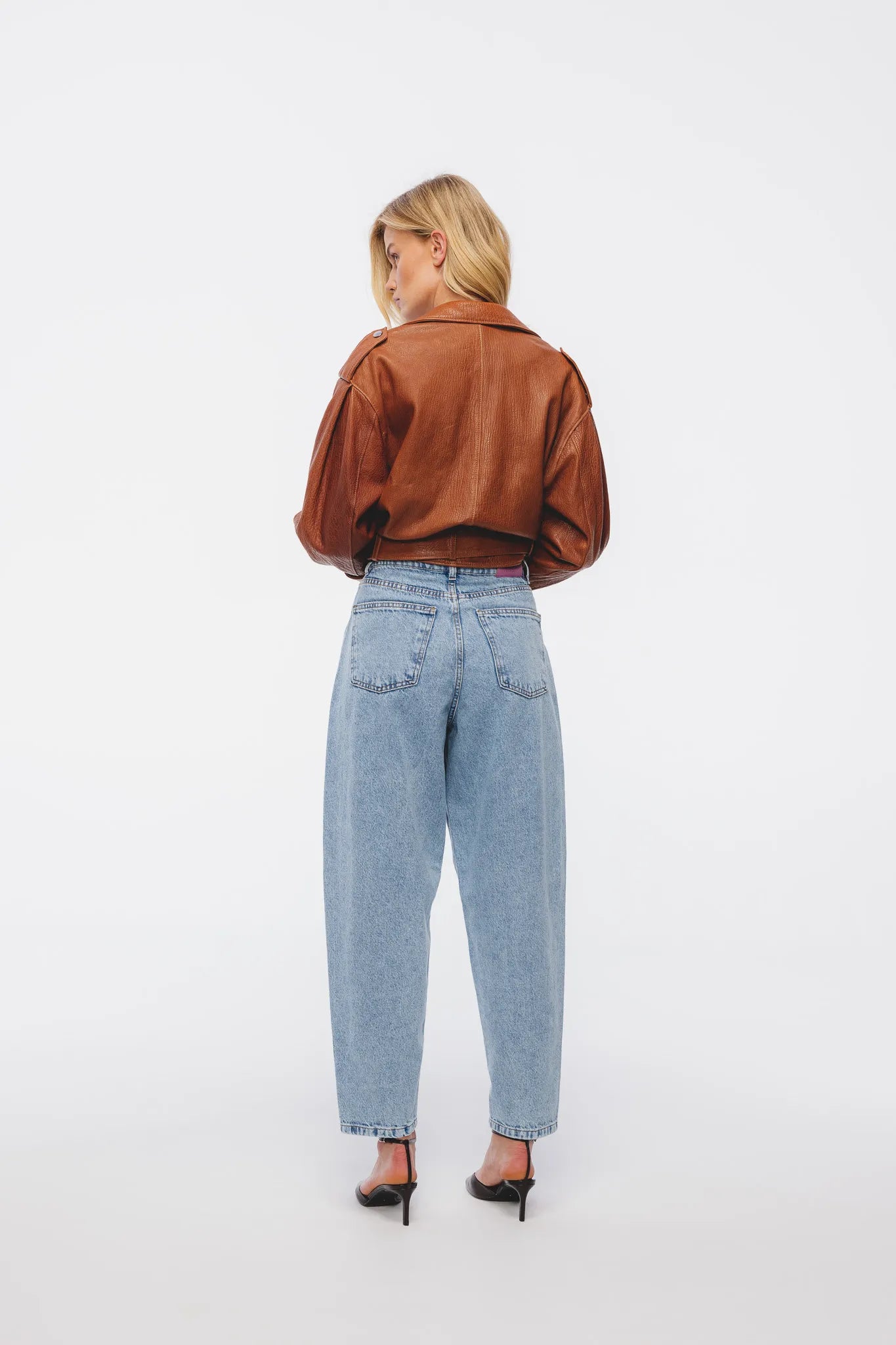 • Omena to jeansy o fasonie balloon, które wyróżniają się charakterystycznym bocznym szwem przechodzącym na przód nogawki. Ich luźny krój, zwężający się ku dołowi, świetnie wpisuje się w aktualne trendy, a jednocześnie pozostaje komfortowy i ponadczasowy.