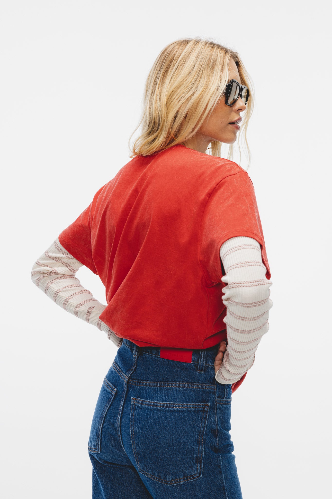 Sali to klasyczne spodnie denimowe o prostym, wygodnym kroju. Uszyte z bawełny, są trwałe, naturalne i dobrze pracują podczas noszenia. To model, który pozostaje w szafie na lata — codzienny, uniwersalny i łatwy do stylizowania.