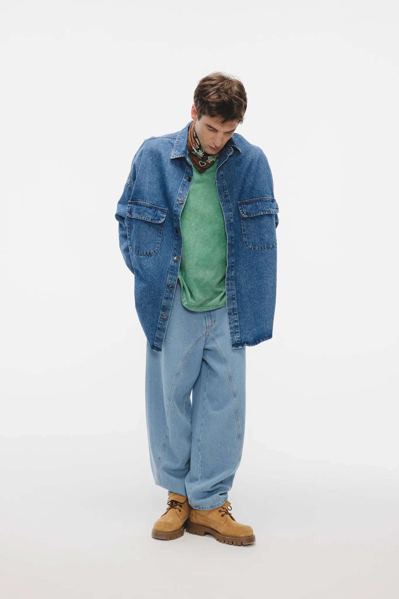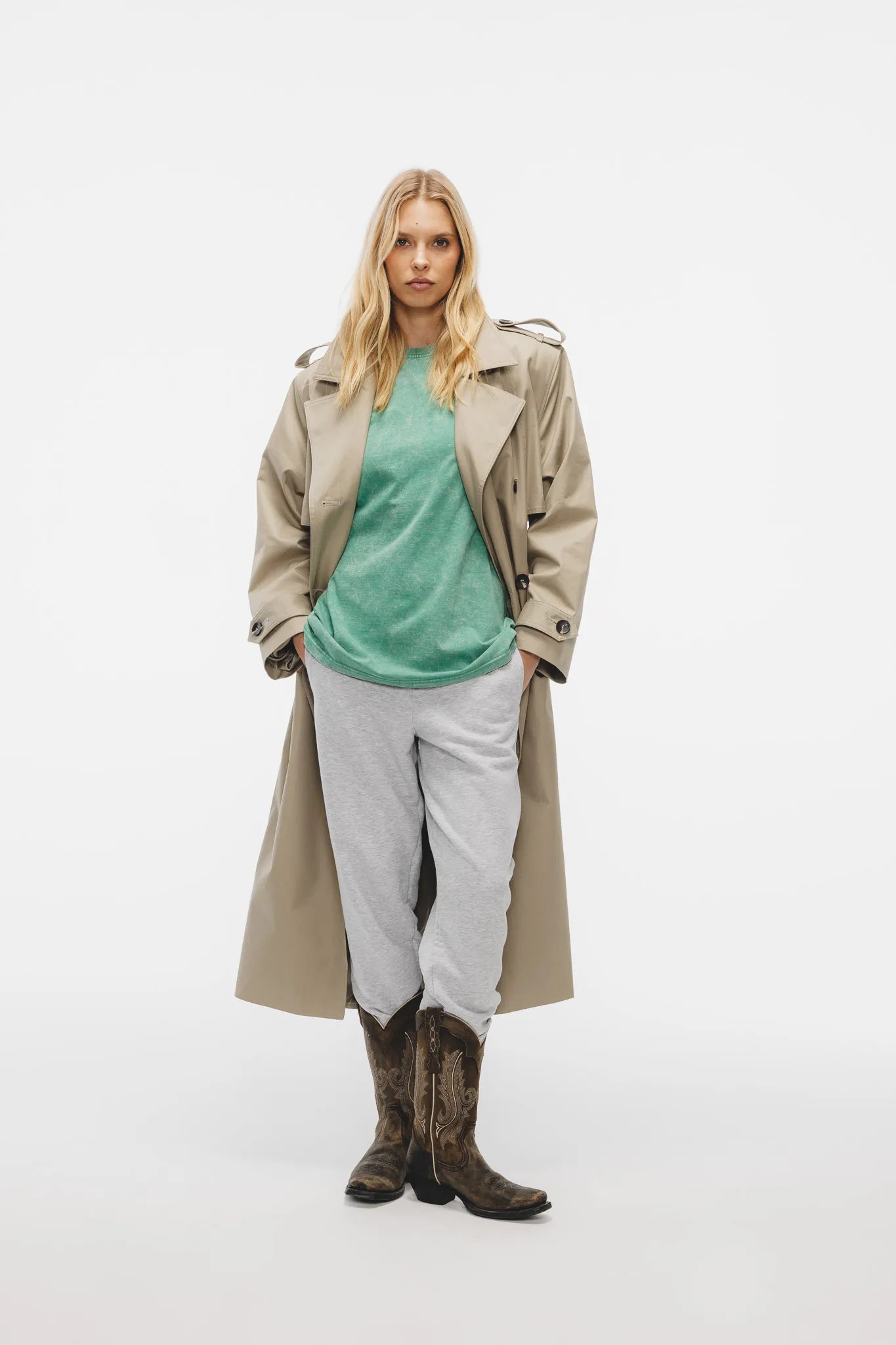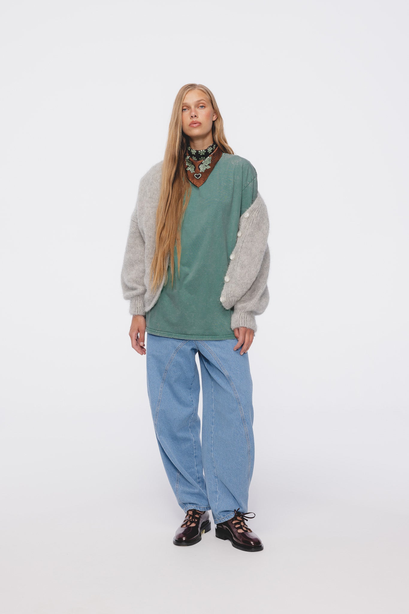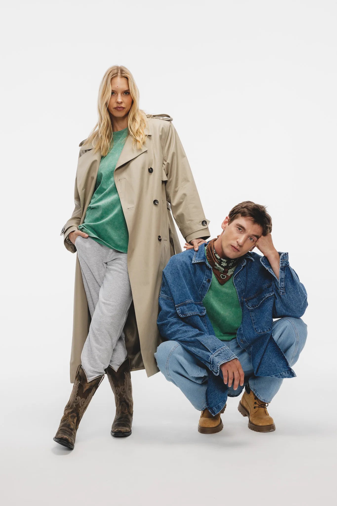 • Oversize’owy T-shirt Dru to ukłon w stronę miejskiego luzu. Model unisex o wydłużonym kroju i swobodnej formie. Idealnie wpisuje się w styl vintage streetwearu i wyróżnia się spranym zielonym kolorem.