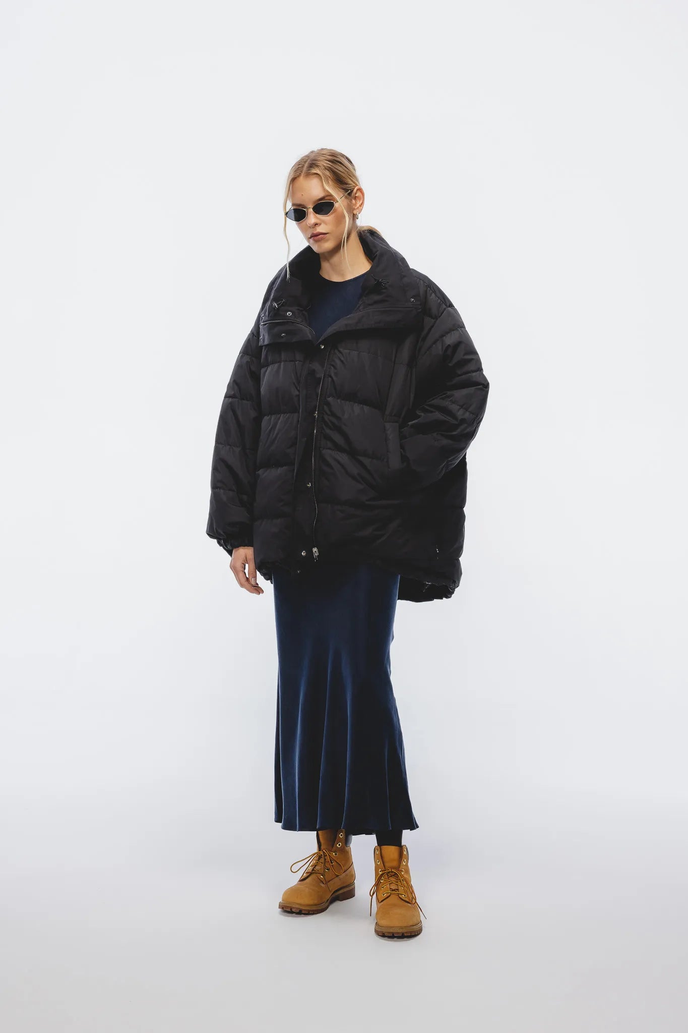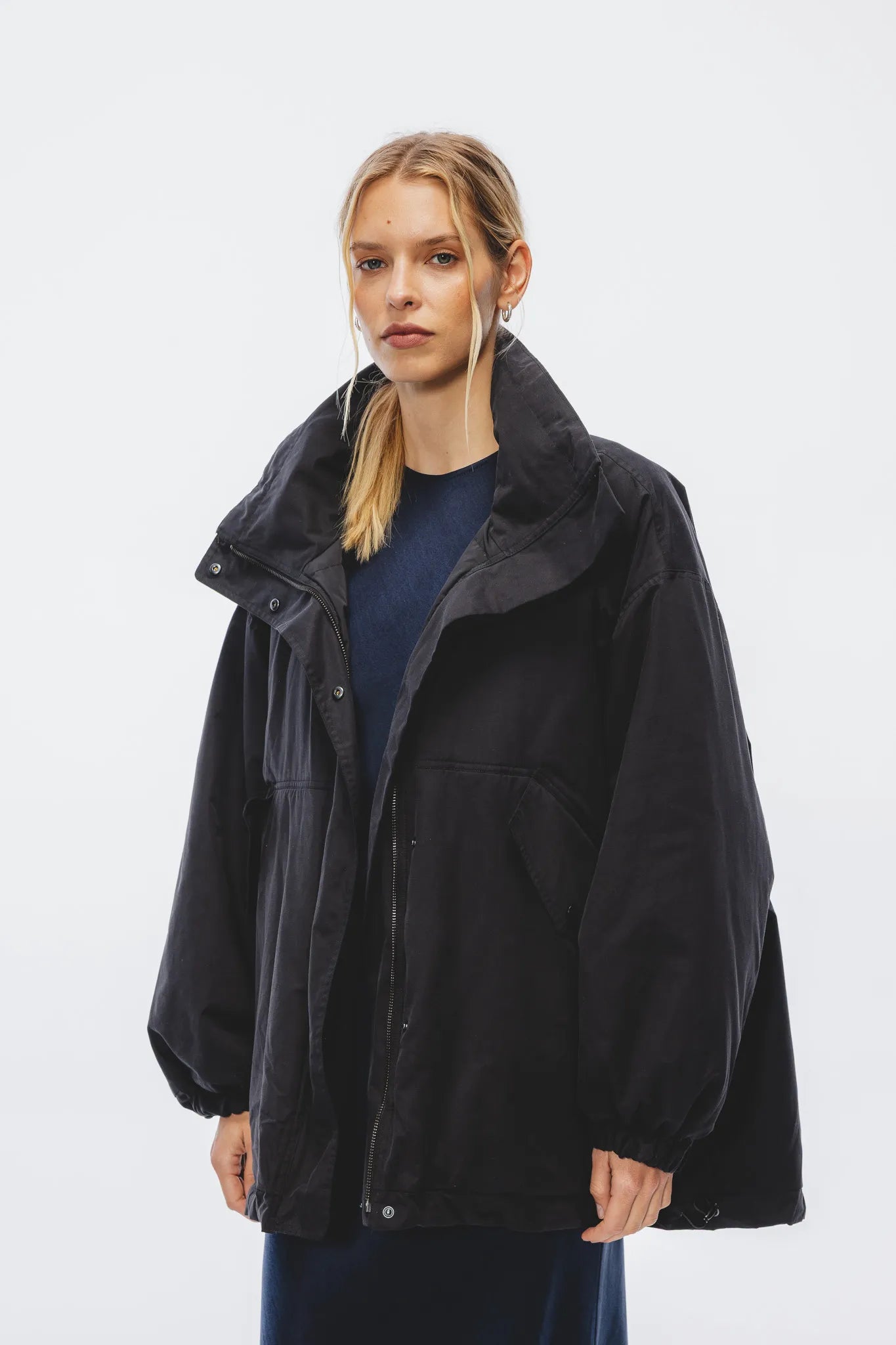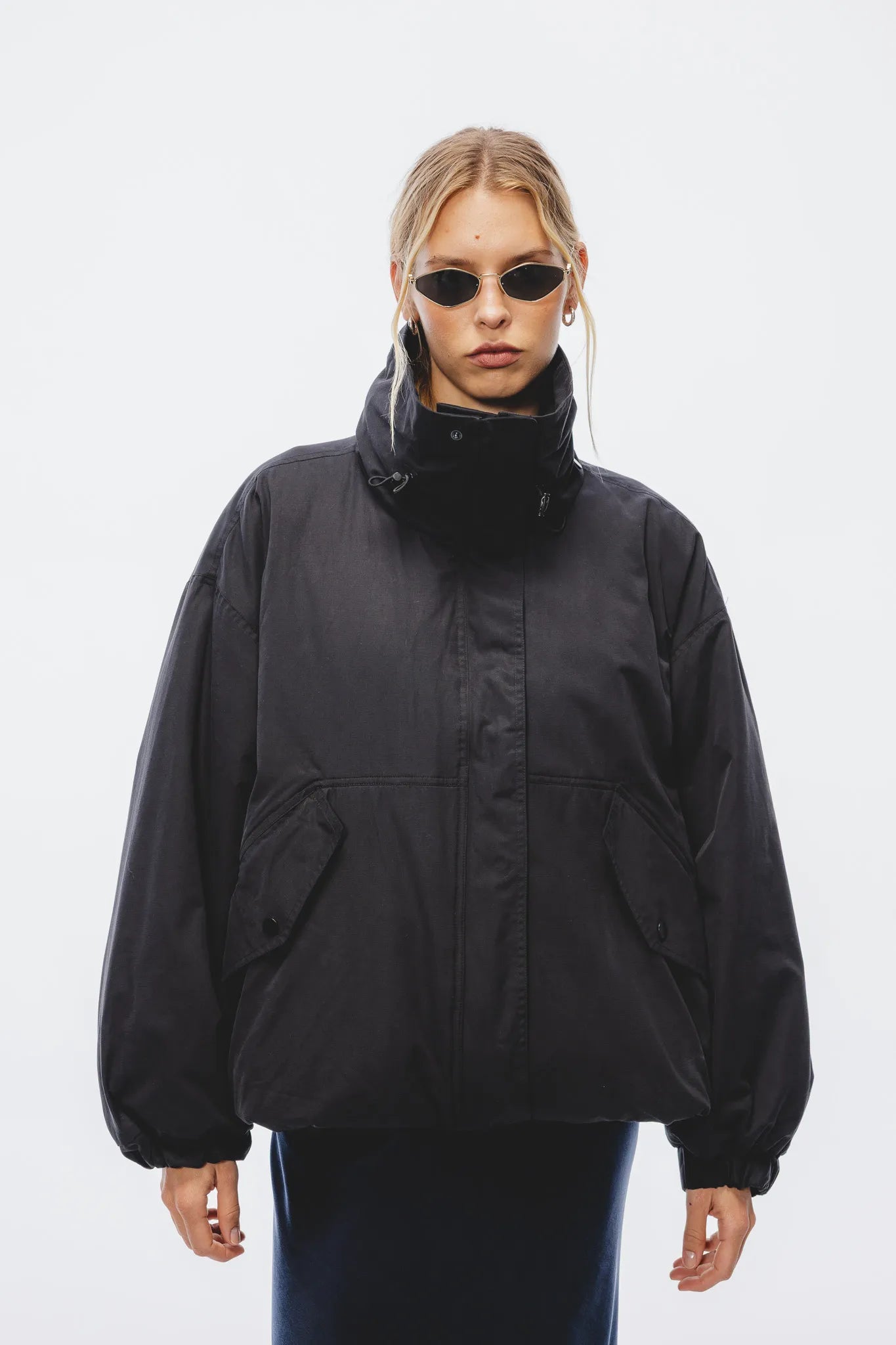 Dodatkowym elementem jest ściągacz w dolnej części, dzięki któremu można zmienić kształt kurtki, tworząc efekt modnej bombki lub pozostawiając ją w prostszej, klasycznej formie.