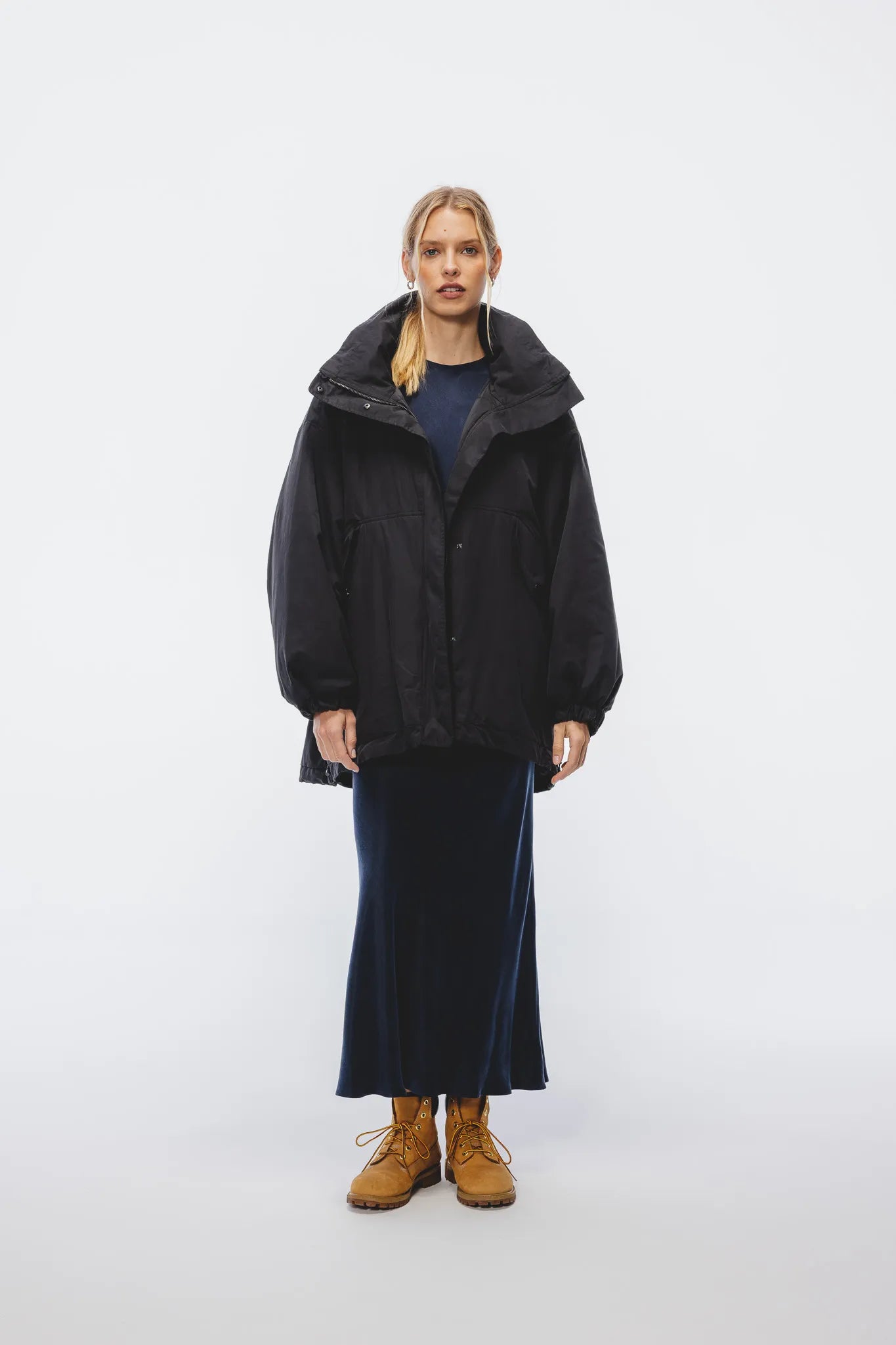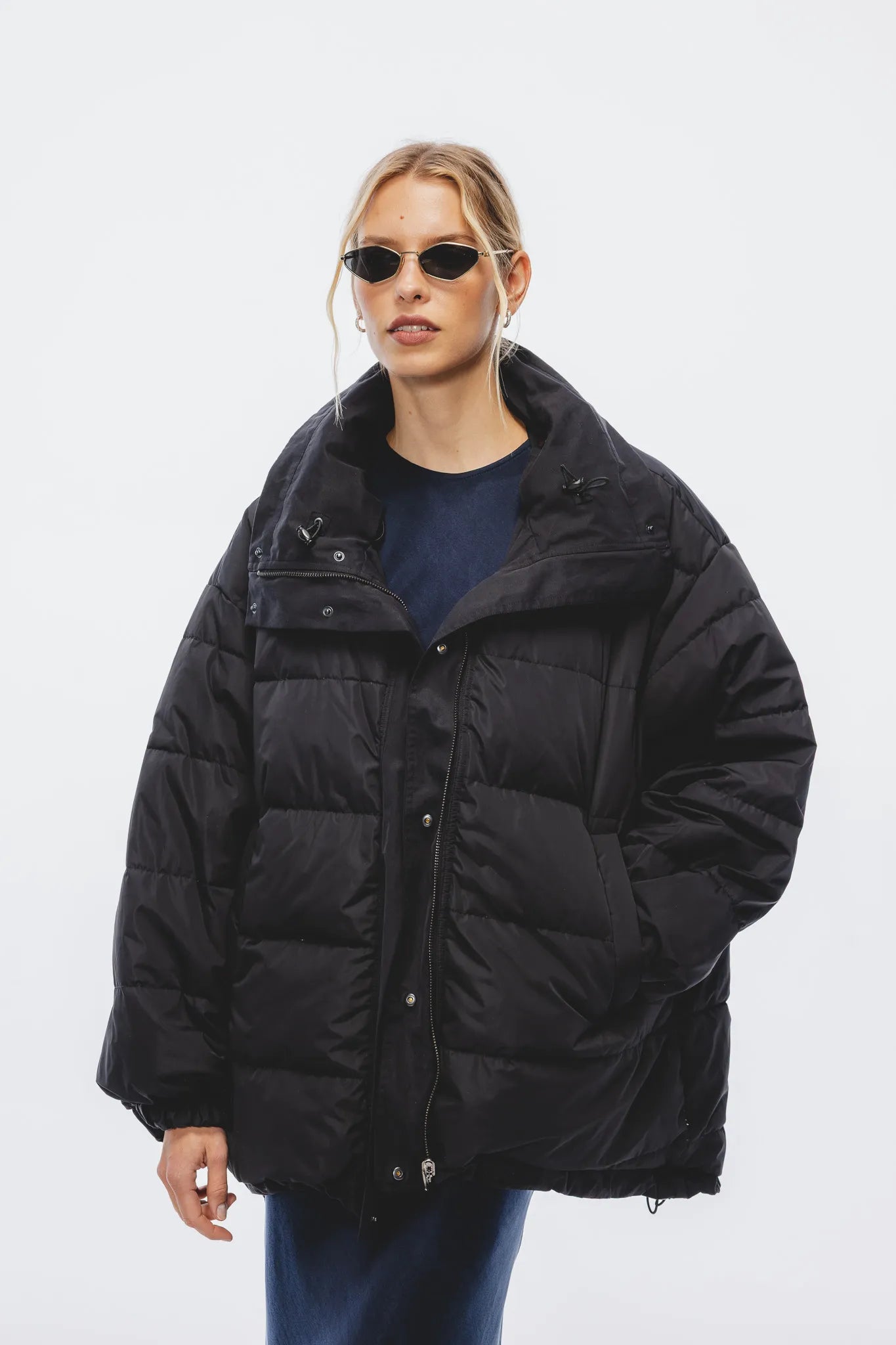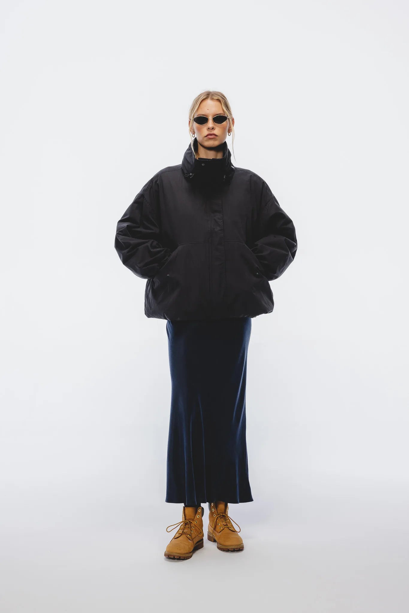 Dodatkowym elementem jest ściągacz w dolnej części, dzięki któremu można zmienić kształt kurtki, tworząc efekt modnej bombki lub pozostawiając ją w prostszej, klasycznej formie.